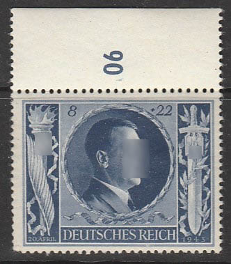 Германия (III Рейх) 1943 год. 54 день рождения рейхсканцлера Адольфа Гитлера, ном. 8+22 Pf, 1 марка с цифровым полем из серии.