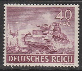 Германия (III Рейх) 1943 год. Немецкий средний танк "Панцеркампфваген-IV" (ном. 40+40 Pf), 1 марка из серии (б/клея)