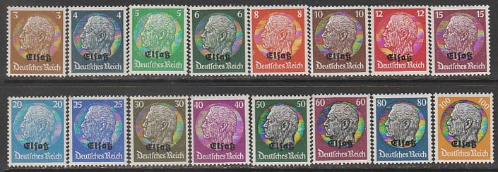 Германия (III Рейх. Аннексия Эльзаса) 1940 год. Стандарт. Рейхспрезидент Пауль фон Гинденбург, НДП, 16 марок.