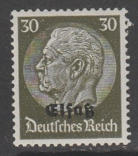 Германия (III Рейх. Аннексия Эльзаса) 1940 год. Стандарт. Рейхспрезидент Пауль фон Гинденбург, (ном. 30 Pf), НДП, 1 марка из серии. (1 из 16) (2,8/2,2)