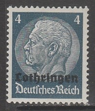 Германия (III Рейх. Аннексия Лотарингии) 1940 год. Стандарт. Рейхспрезидент Пауль фон Гинденбург, (ном. 4 Pf), НДП, 1 марка из серии. (1 из 16) (1,5/1,2)