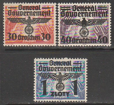 Германия (III Рейх. Оккупация Польши) 1940 год. Зимняя помощь, НДП на марках Польши, 3 марки.