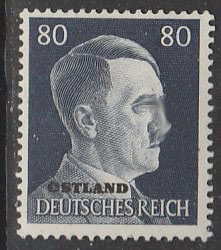 Германия (III Рейх. Оккупация Прибалтики и Белоруссии) 1941 год. Стандарт. Рейхсканцлер Адольф Гитлер (ном. 80 Pf), НДП, 1 марка из серии.
