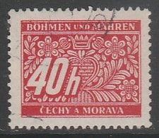 Германия (III Рейх. Протекторат Богемии и Моравии) 1939 год. Номинал в цветочном узоре, ном. 40 Н, 1 доплатная марка из серии (гашёная)