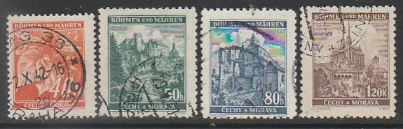 Германия (III Рейх. Протекторат Богемии и Моравии) 1940 год. Стандарт. Крепости, ветка липы, 4 марки (гашёные) (1)