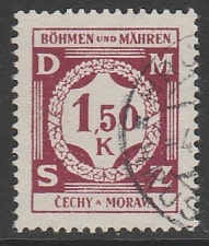 Германия (III Рейх. Протекторат Богемии и Моравии) 1941 год. Цифровой рисунок, ном. 1,5 К, 1 служебная марка из серии (гашёная)