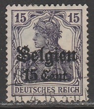 Германия (Оккупация Бельгии, I Мировая) 1916/1918 год. Стандарт. Аллегория. Германия с императорской короной, ном. 15 С/15 Pf, надпечатка, 1 марка из серии (гашёная) (1 из 16) (2,5/1,2/2,5)