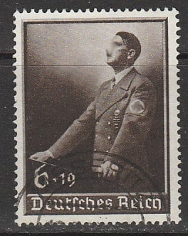 Германия (Рейх) 1939 год. День трудящихся (1 мая). Адольф Гитлер за трибуной, 1 марка (гашёная)