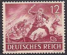 Германия (Рейх) 1943 год. Штурмовая пехота (ном. 12+8). 1 марка из серии с наклейкой (1.6м)