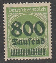 Германия (Веймарская республика) 1923 год. Стандарт. Цифровой рисунок в круге. Надпечатка нового номинала, 800Tsd/400M, 1 марка из серии (наклейка) (I)