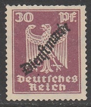 Германия (Веймарская республика) 1924 год. Имперский орёл, надпечатка на стандарте, 30 Pf, 1 служебная марка из серии (наклейка) (1 из 9)