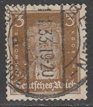 Германия (Веймарская республика) 1926/1927 год. Стандарт. Писатель Иоганн Вольфганг фон Гёте, 3 Pf., 1 марка из серии (гашёная)