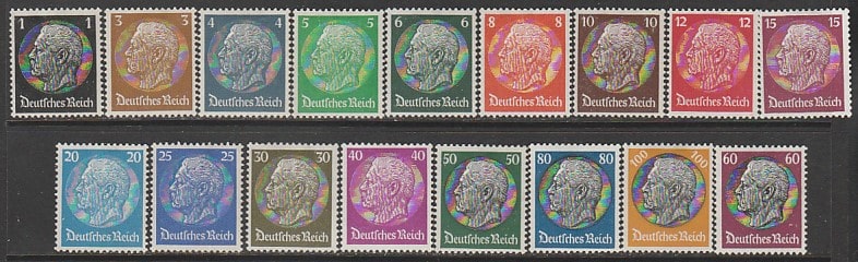 Германия (III Рейх) 1933/1936 год. Стандарт. Рейхспрезидент Пауль фон Гинденбург, 17 марок(наклейка) (80/16/10)