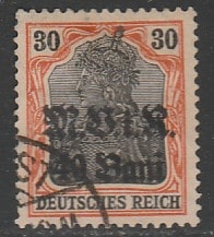Германия (Военная администрация в Румынии, I Мировая) 1917/1918 год. Стандарт. Аллегория. Германия с императорской короной, ном. 40 В/30 Pf., надпечатка, 1 марка из серии (гашёная) (1 из 4) (4,5/1,5/2)
