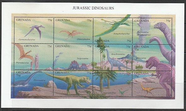 Гренада 1994 год. Динозавры Юрского периода, малый лист. (12)