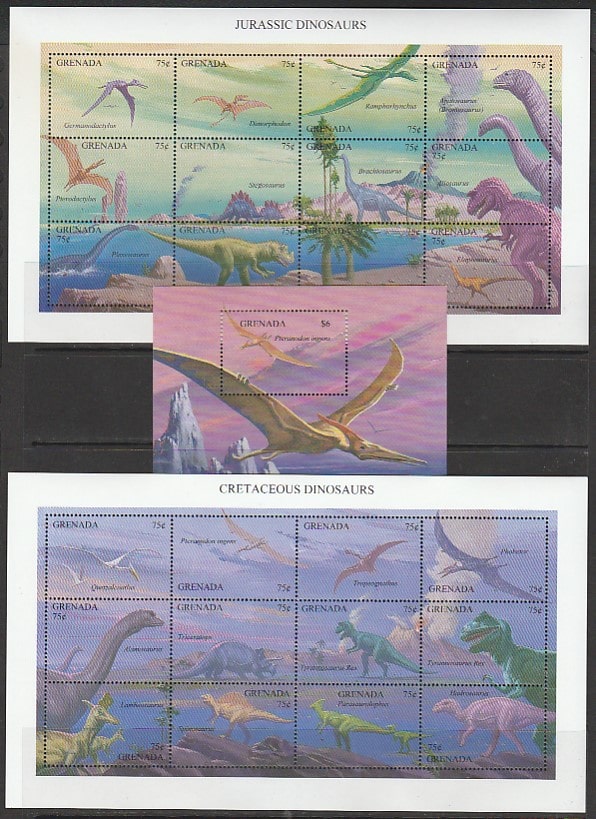 Гренада 1994 год. Доисторические животные, 2 малых листа + блок.