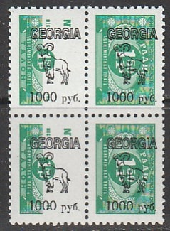 Грузия 1994 год. НДП на непочтовых марках Министерства связи СССР, квартблок.