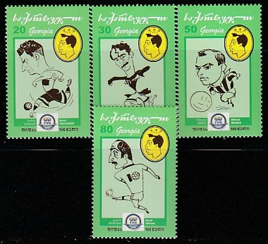Грузия 2004 год. 100 лет ФИФА. Карикатуры на грузинских футболистов, 4 марки.