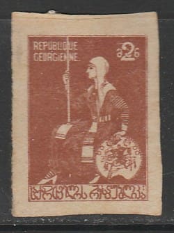 Грузия (Гражданская война) 1919/1920 год. Царица Тамара, 2 R, 1 б/зубц. марка (наклейка)