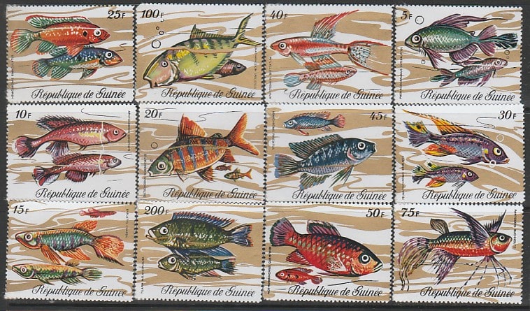 Гвинея 1971 год. Рыбы, 12 марок (наклейка)