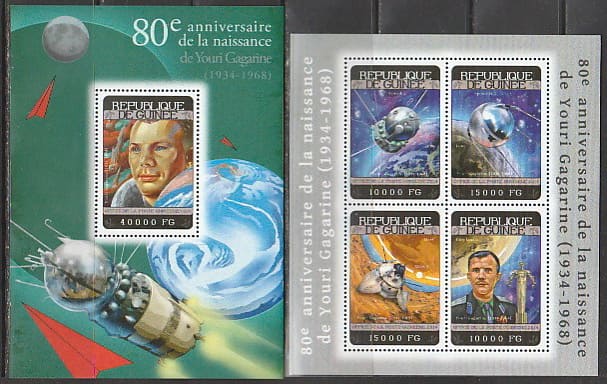 Гвинея 2014 год. 80 лет со дня рождения Ю.А. Гагарина, малый лист + блок.