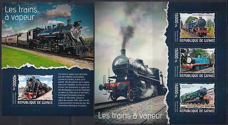 Гвинея 2014 год. Паровозы, малый лист + блок