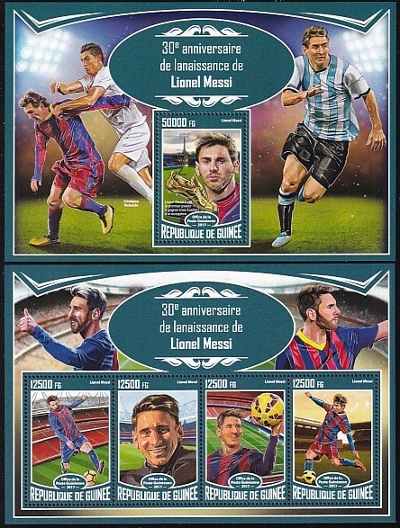Гвинея 2017 год. Футбол. Лионель Месси, малый лист + блок