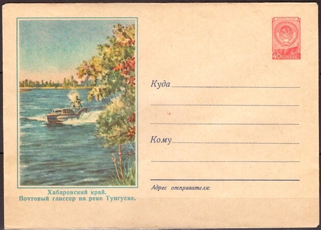 ХМК 57-241 Хабаровский край. Почтовый глиссер на реке Тунгуске. Выпуск 07.12.1957 г.