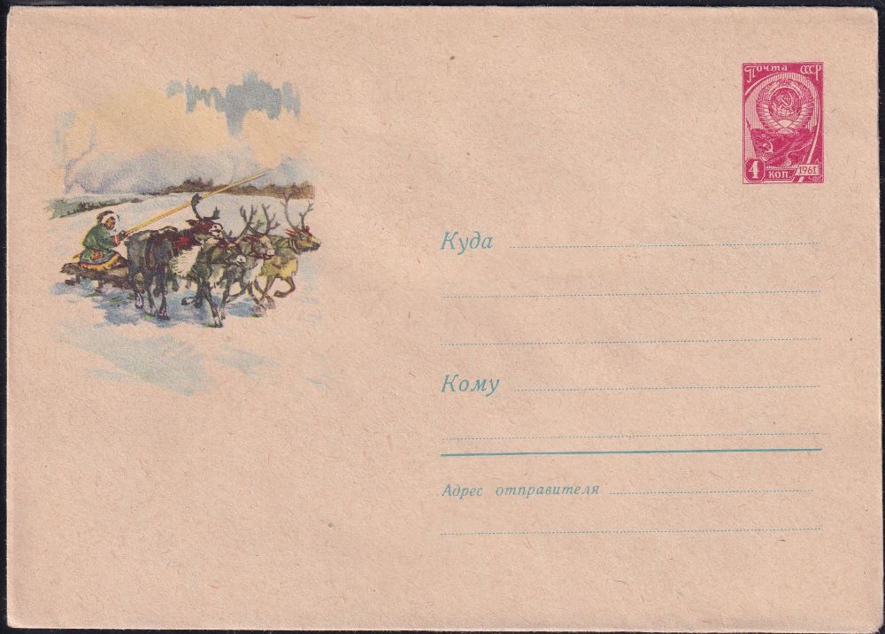 ХМК 61-305 Оленья упряжка (худ. Н. А. Афанасьева) Выпуск 7.10.1961 год