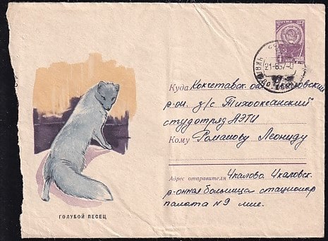 ХМК 67-17 Голубой песец. Выпуск 27.03.1967 год, прошел почту
