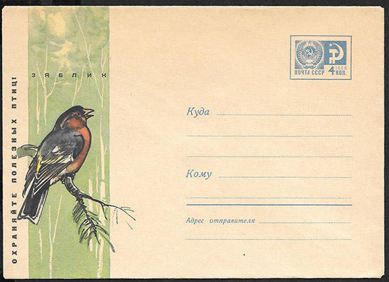 ХМК 67-750. Охраняйте полезных птиц. Зяблик. 1967 год