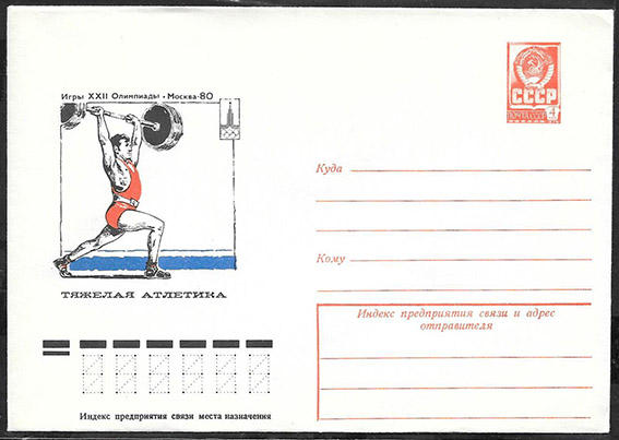ХМК 77-496. Игры XXII Олимпиады. Тяжелая атлетика. 19,07,1977 год. (тип 1
