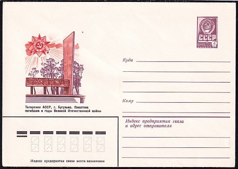 ХМК 79-453 Татарская АССР. г. Бугульма. Памятник, погибшим в ВОВ. Выпуск 15.08.1979 год