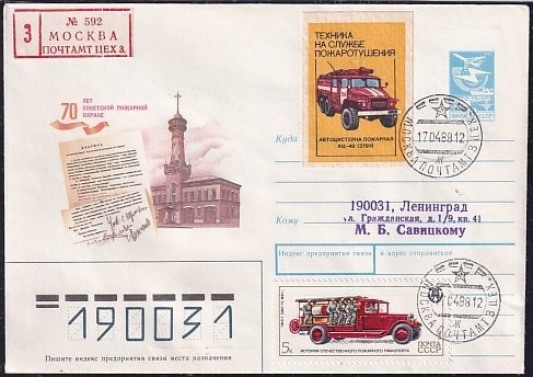 ХМК 88-6 70 лет советской пожарной охране. Выпуск 8.01.1988 год, прошел почту