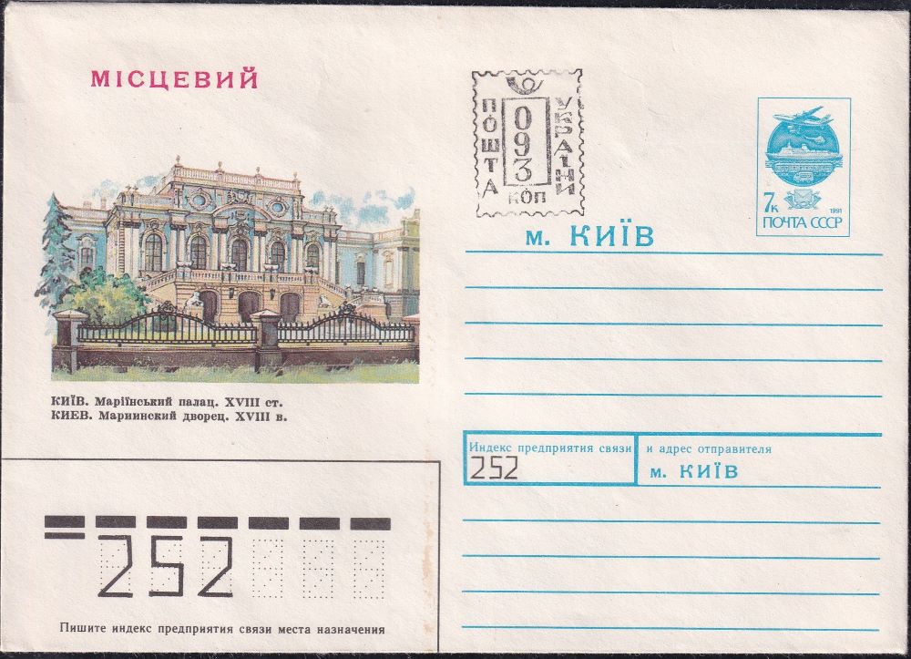 ХМК 91-98 Киев. Мариинский дворец (штемпель доплаты Украина). Выпуск 05.04.1991 год