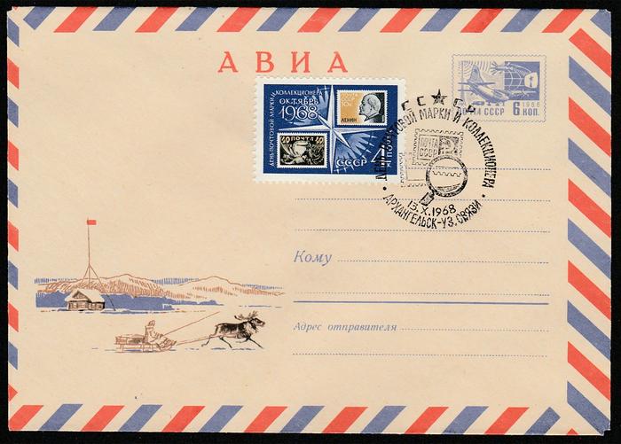 ХМК АВИА со спецгашением. День почтовой марки и коллекционера. 13.10.68 г. Архангельск.