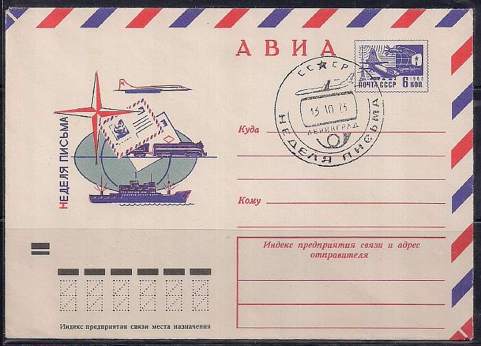 ХМК АВИА со спецгашением. Неделя письма 13.10.73 год. Ленинград