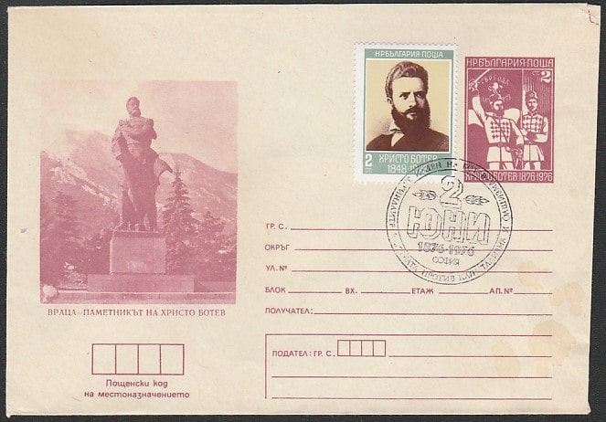 ХМК Болгарии. Город Враца. Памятник Христо Ботеву, спецгашение, 1976 год. СГ: День Христо Ботева и погибших в борьбе против капитализма и фашизма, 02.06.1976 год, София.