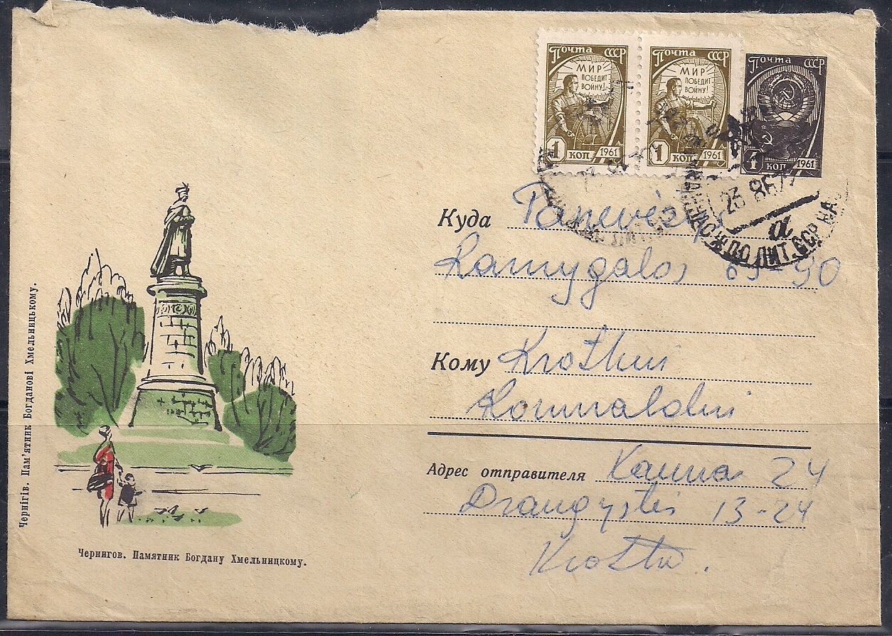 ХМК. Чернигов. Памятник Богдану Хмельницкому, 1967 год, № 67-94, прошел почту Состояние смотреть на фото