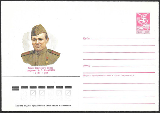 ХМК Герой Советского Союза старшина А. Б. Шамкаев(1916 - 1981). Выпуск 16.04.85 г.