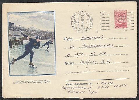 ХМК. Конькобежцы, 26.08.1954 год, прошёл почту