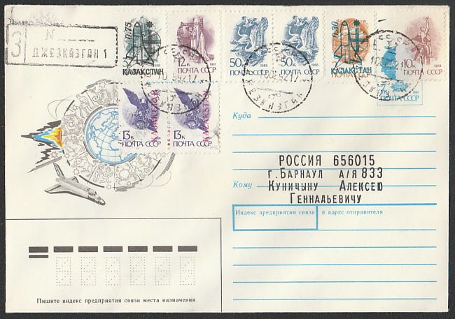 ХМК Космический челнок. Провизории Казахстана. Гашение: Джезказган-1, 1992 год, п/почту.