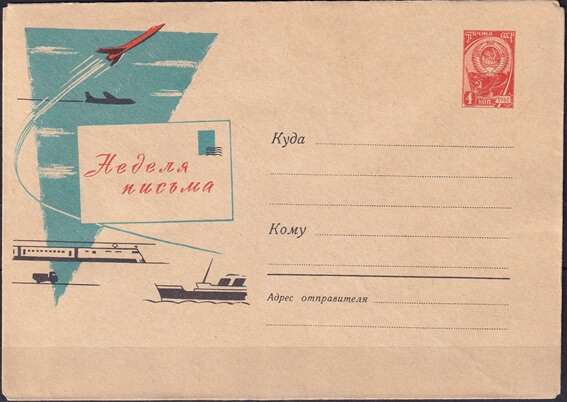 ХМК Неделя письма. Виды почтового транспорта. Лесегри. Выпуск 25.08.1965 год