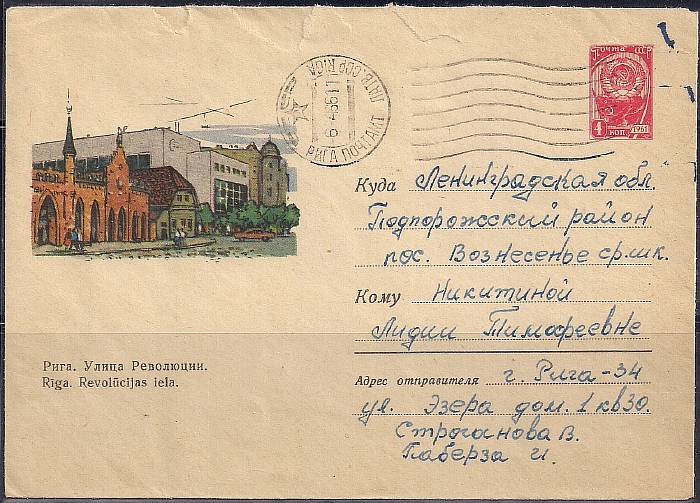 ХМК. Рига. Улица Революции, 02.02.1965 год, № 65-49, прошел почту