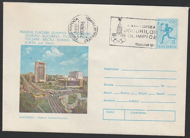 ХМК Румынии. Бухарест. Олимпиада в Москве, спецгашение, 09.02.1980 год.