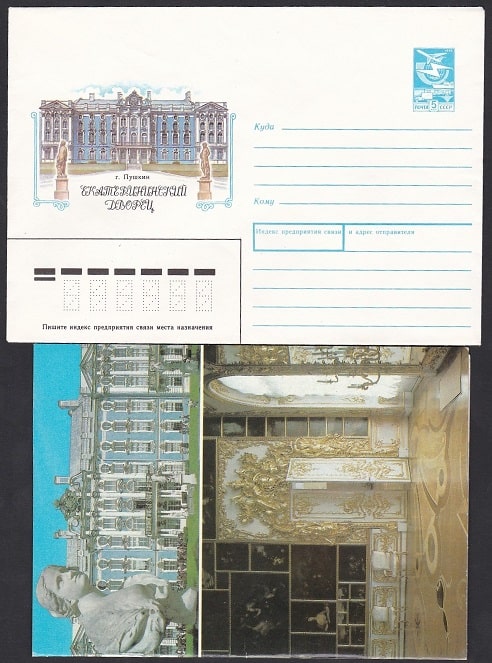 ХМК с карточкой. 1403 Сувенирный комплект. Пушкин Екатерининский дворец Ленинград. 1988 год