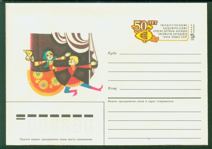 Конверт с ОМ. 50 лет ансамблю народного танца. Выпуск 30.12.1986. 1987 г. № 86-615