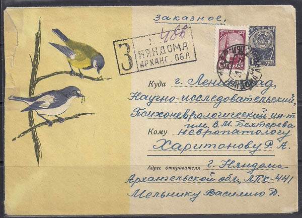 ХМК. Синицы.№ 64-197, 16.04.1964 год, заказное, прошёл почту