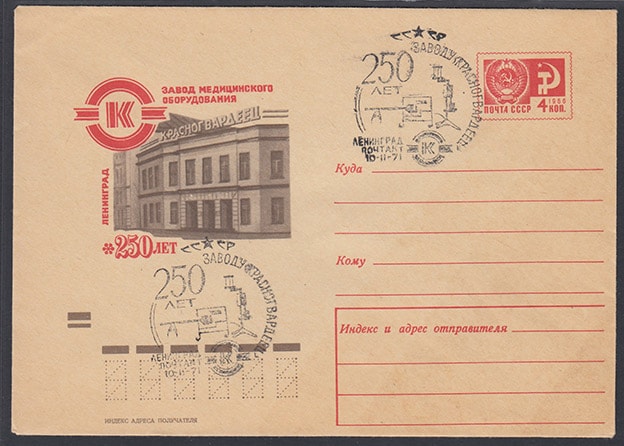 ХМК со спецгашением - 250 лет заводу Красногвардеец, Ленинград 10.11.1971 год