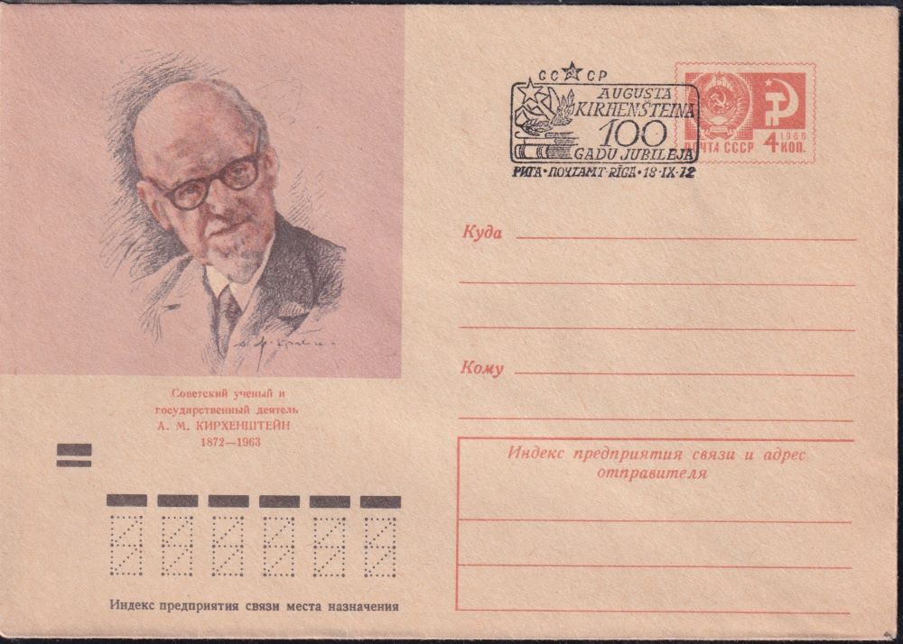 ХМК со спецгашением - 100 лет со дня рождения А.М. Кирхенштейна, 18.09.1972 год, Рига